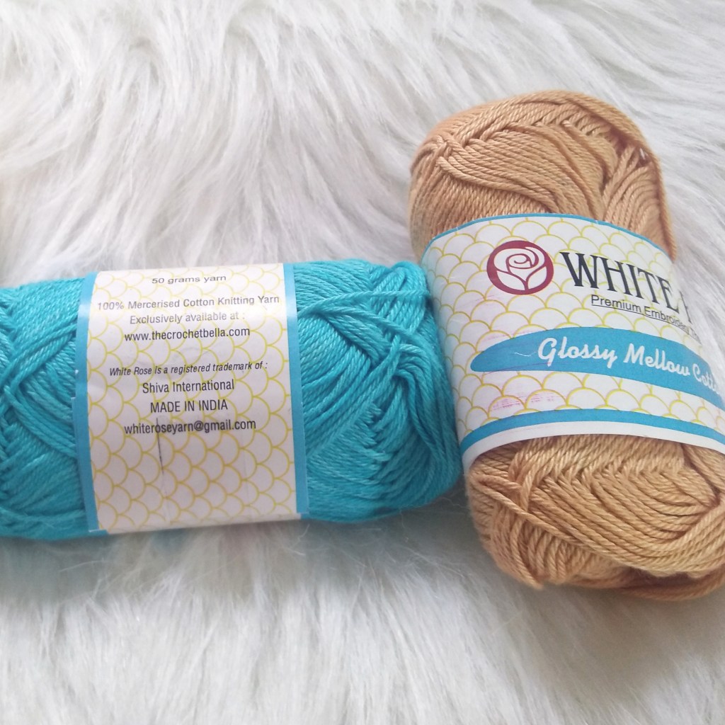 These lovely cotton yarns are sourced and retailed by a wonderful person Akanksha Kapoor Tandon, founder of The Crochet Bella and Me n Yarns. She is a crocheter by passion and an engineer by profession. White Rose is produced in India by Shiva International Group and they have a wide range of cotton from threads for fine crochet lace work to thick and soft 4 ply cotton yarn
