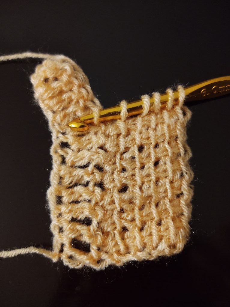 One of the stitches used in the shawl is the Tunisian Linked stitch or the Uple stitch.