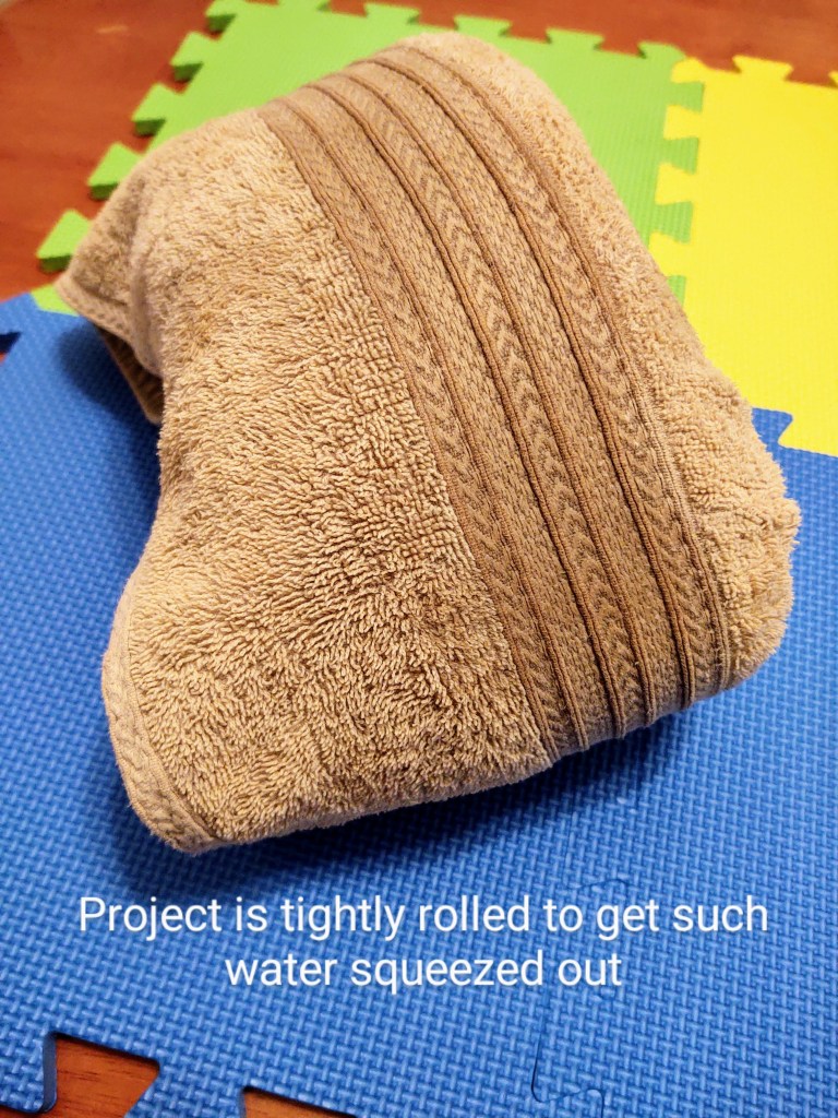 Now roll the piece in a thick towel. Use two towels if there is a lot of water to be removed.