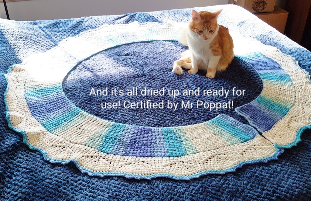 Once again if the material is acrylic, you can use steam to kill the fibres. This means that once the lace stitches open up you do not have to keep blocking everytime you wash.