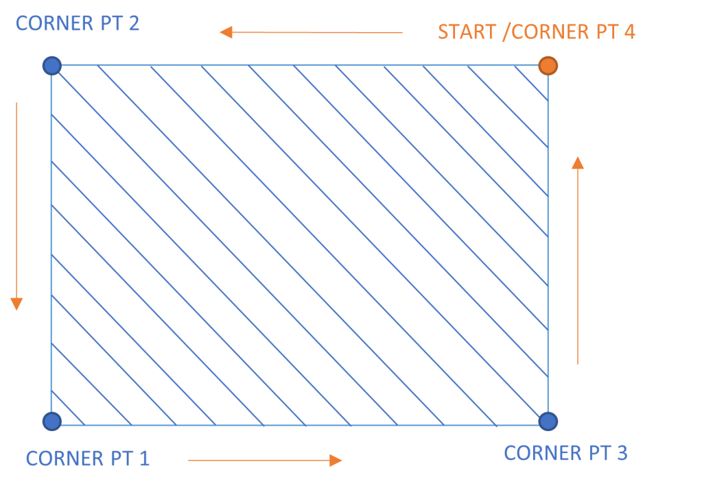 So with the right side facing towards you and the top right point being corner point 4 (where we fastened off our rectangle), we will begin at this point with the larger quantity yarn colour.