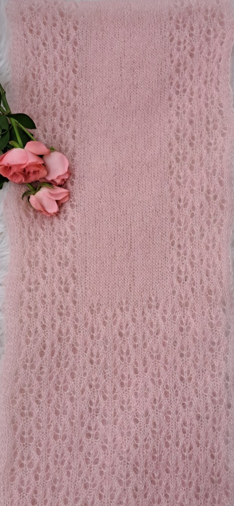 It is a crescent shaped top down shawl, starts with garter tab co.This is airy,classy ,elegant and easy to knit with only one skein of yarn. First Spring Hue Shawl is a pleasure to work on a relaxing garter st. followed by lace sections,which creates a rhythm.Beaded Picot Bind Off is enhancing it’s beauty.Beads are optional.