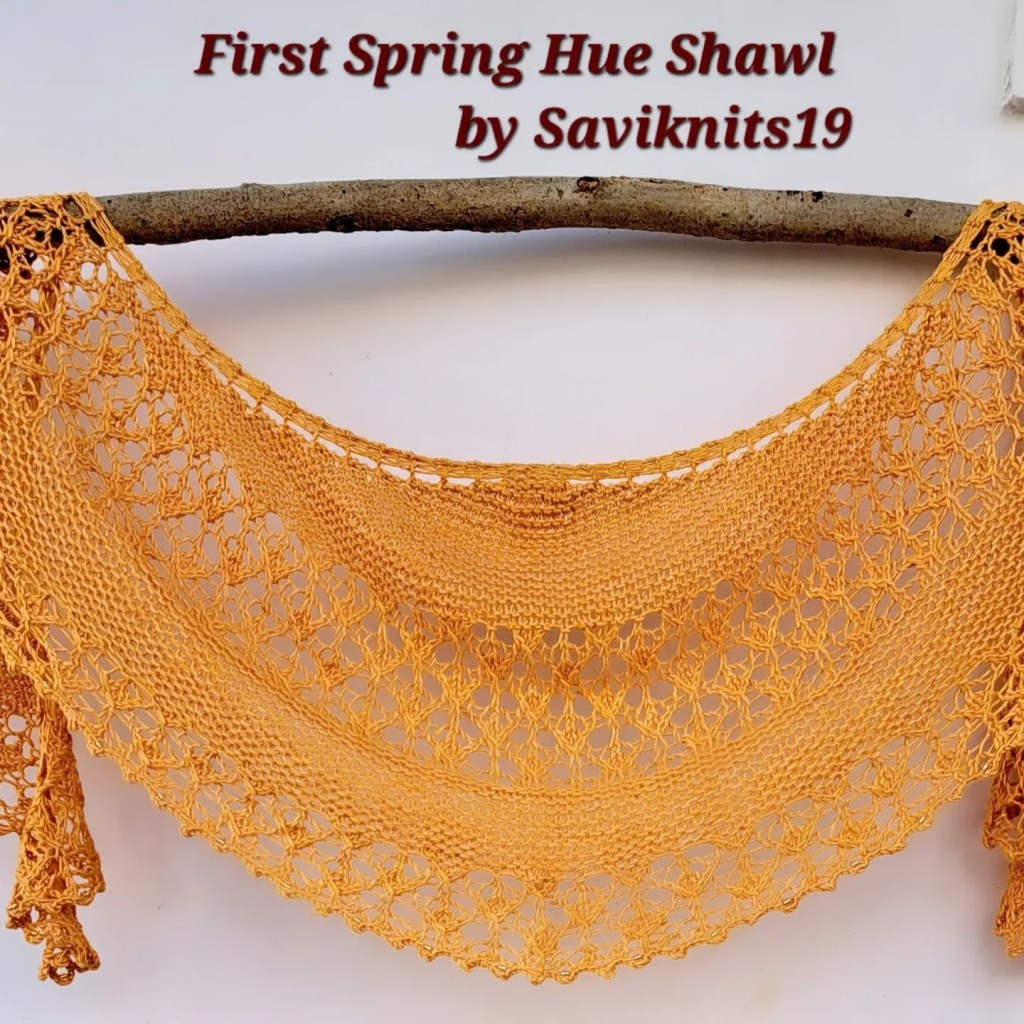 Savita is showcasing two of her patterns today – The ” First Spring Hue Shawl ” is a one skein wonder. It’s a free Ravelry download.