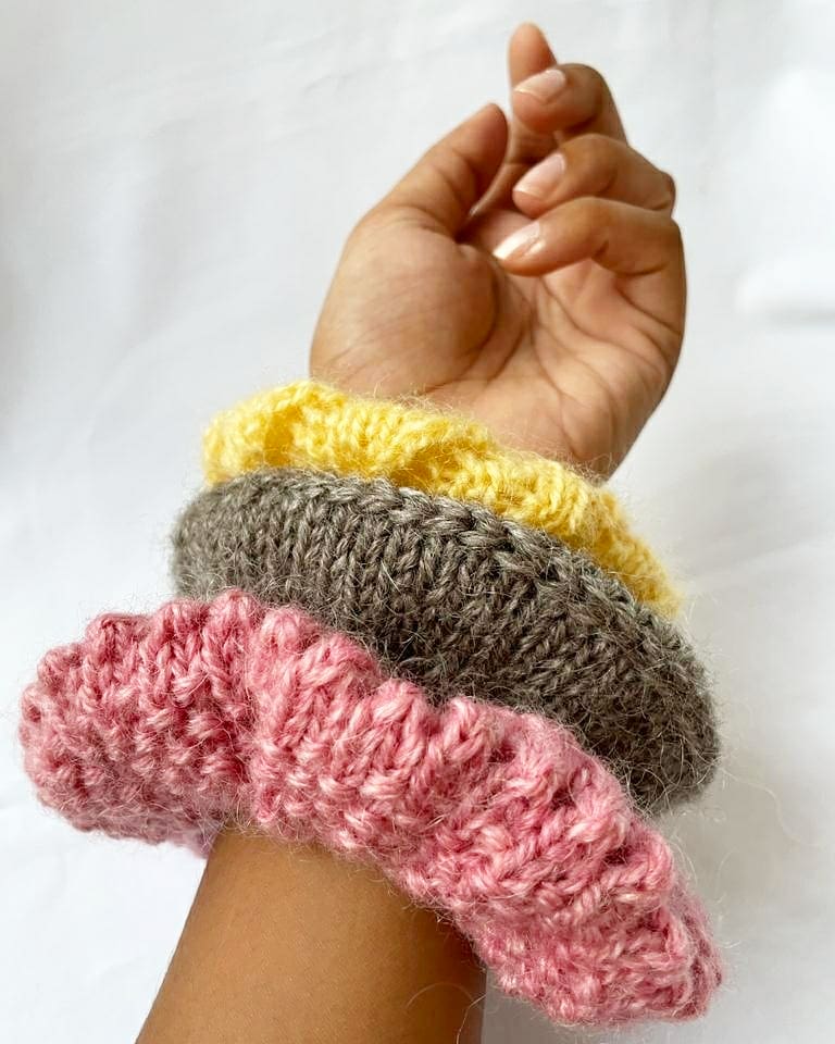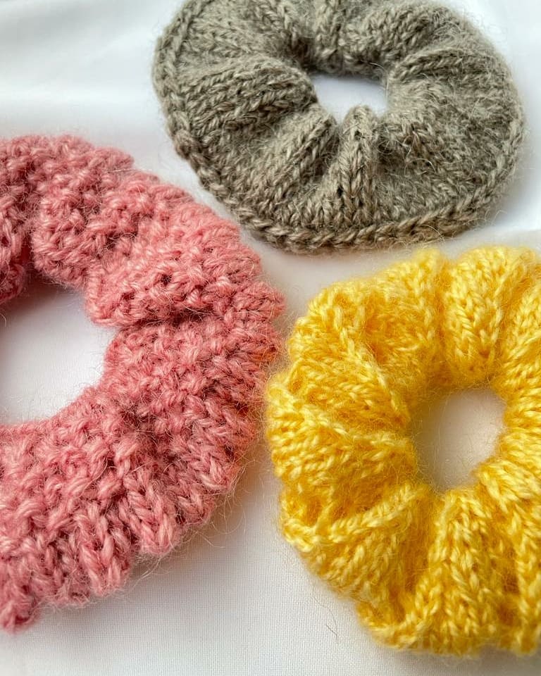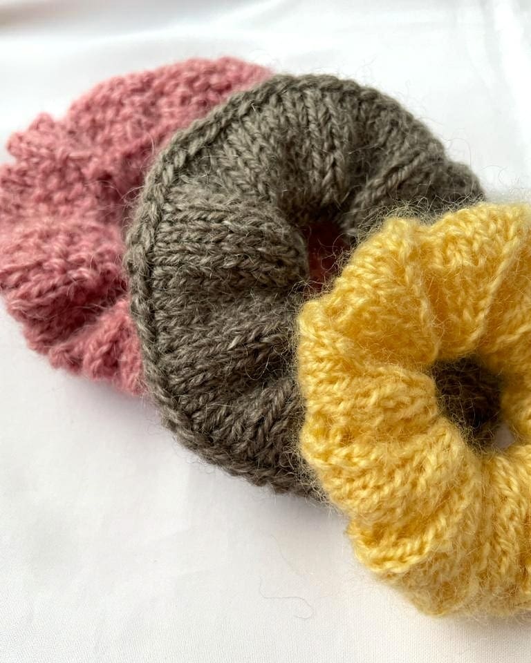 Making scrunchie is one of my favourite ways of using leftover yarns. I designed three scrunchie patterns combining simple knitting techniques and stitches that are beginner-friendly and fun to knit.